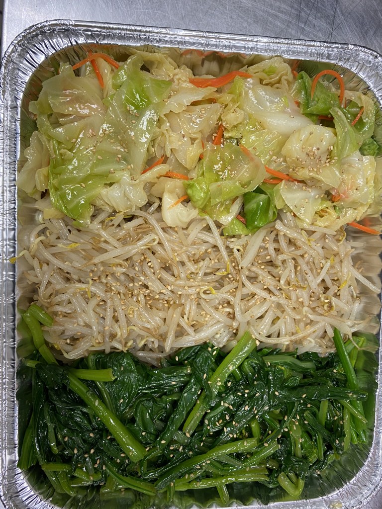 Banchan Side Tray: Mixed Veggies, Seasoned Bean Sprouts & Choy Sum