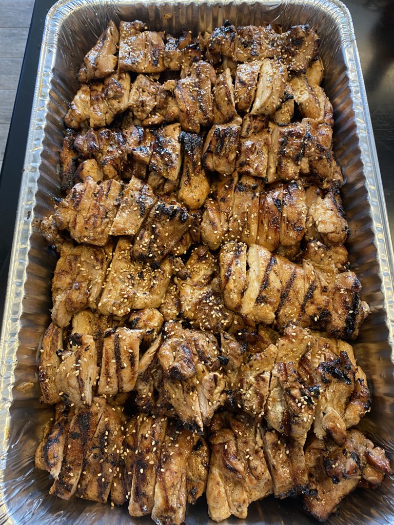 - Hana Platter; Contains; 3 pcs Kalbi, 1 lb Bulgogi Beef, 1 lb Spicy Pork, 3 pcs BBQ Chicken & 5 pieces of Pan Fried Mandoo. ( rice and sides not included, but can be added on at additional costs)